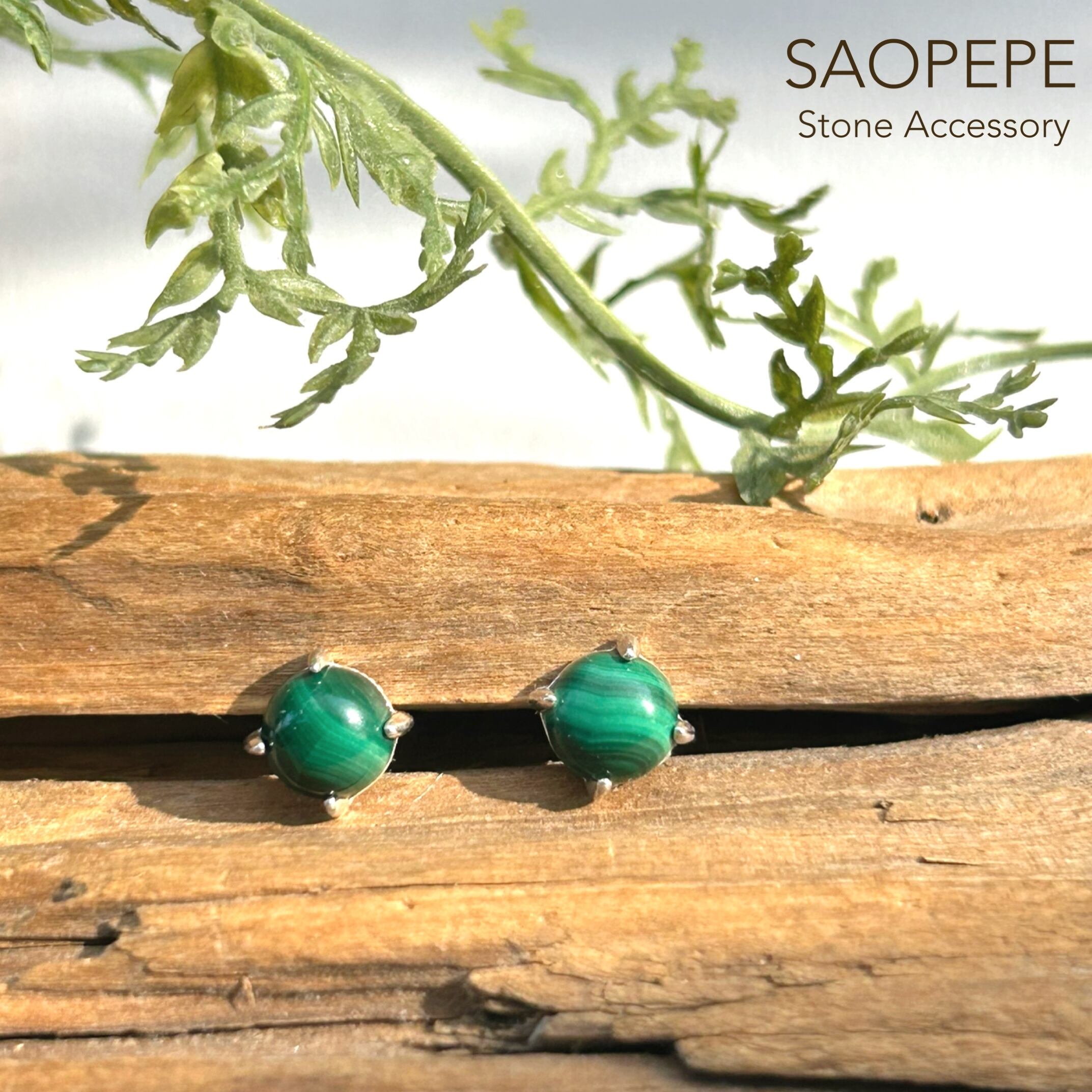 濃いグリーンの癒しSTONE、マラカイトのSTUDピアス!