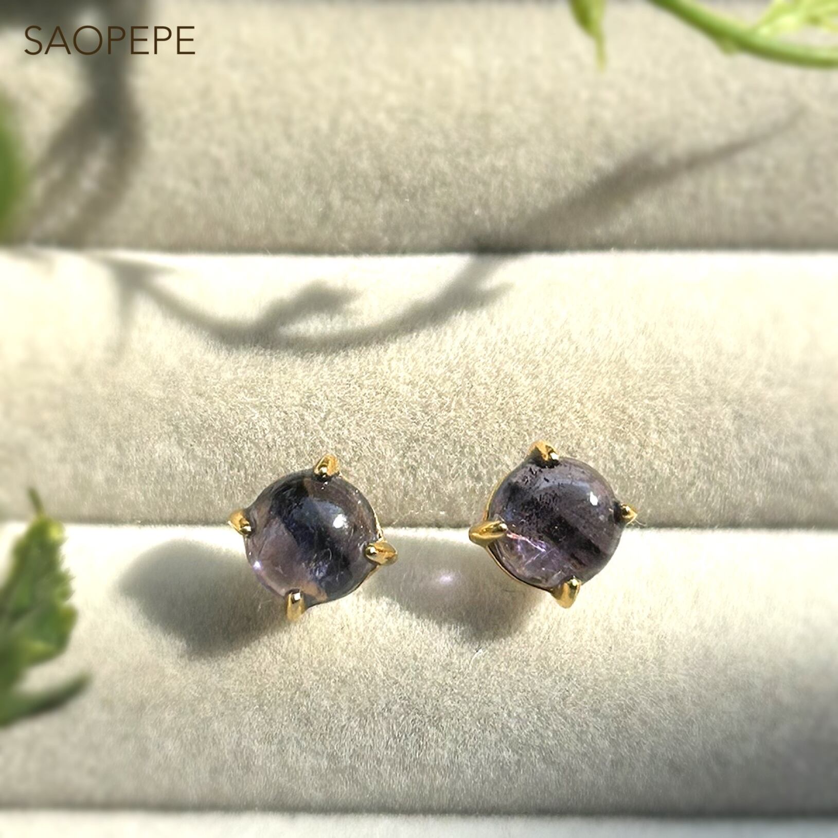 アイオライト スタッドピアス(18KGP・6mmカボション)