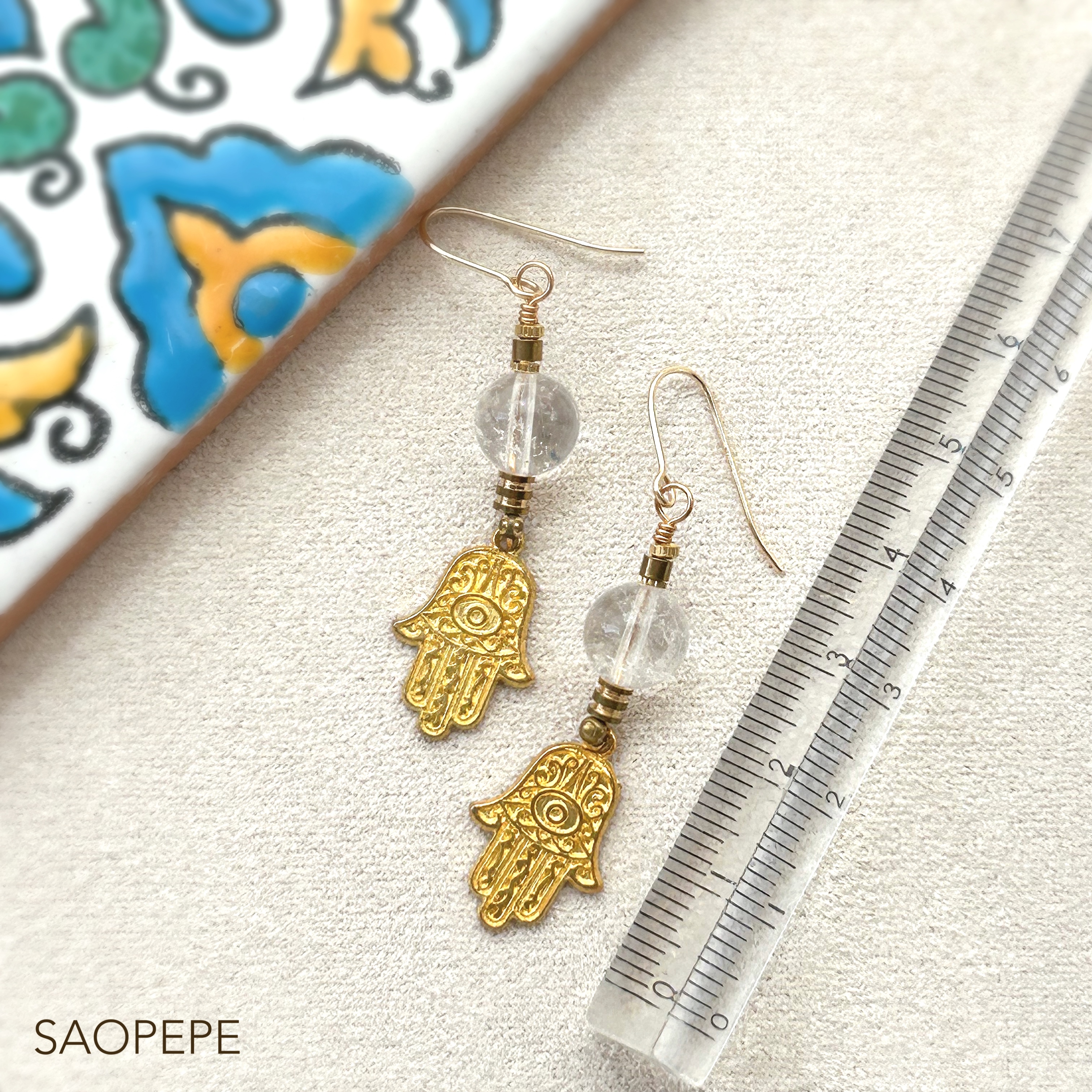 古くはフェニキアなどの地中海文化に起源があるとされ、モロッコやトルコなどイスラム圏において、邪視を払う(魔よけ)&豊穣のシンボルとされる護符です。