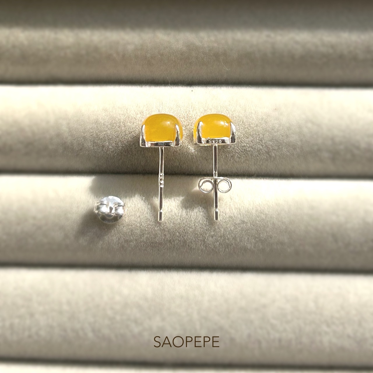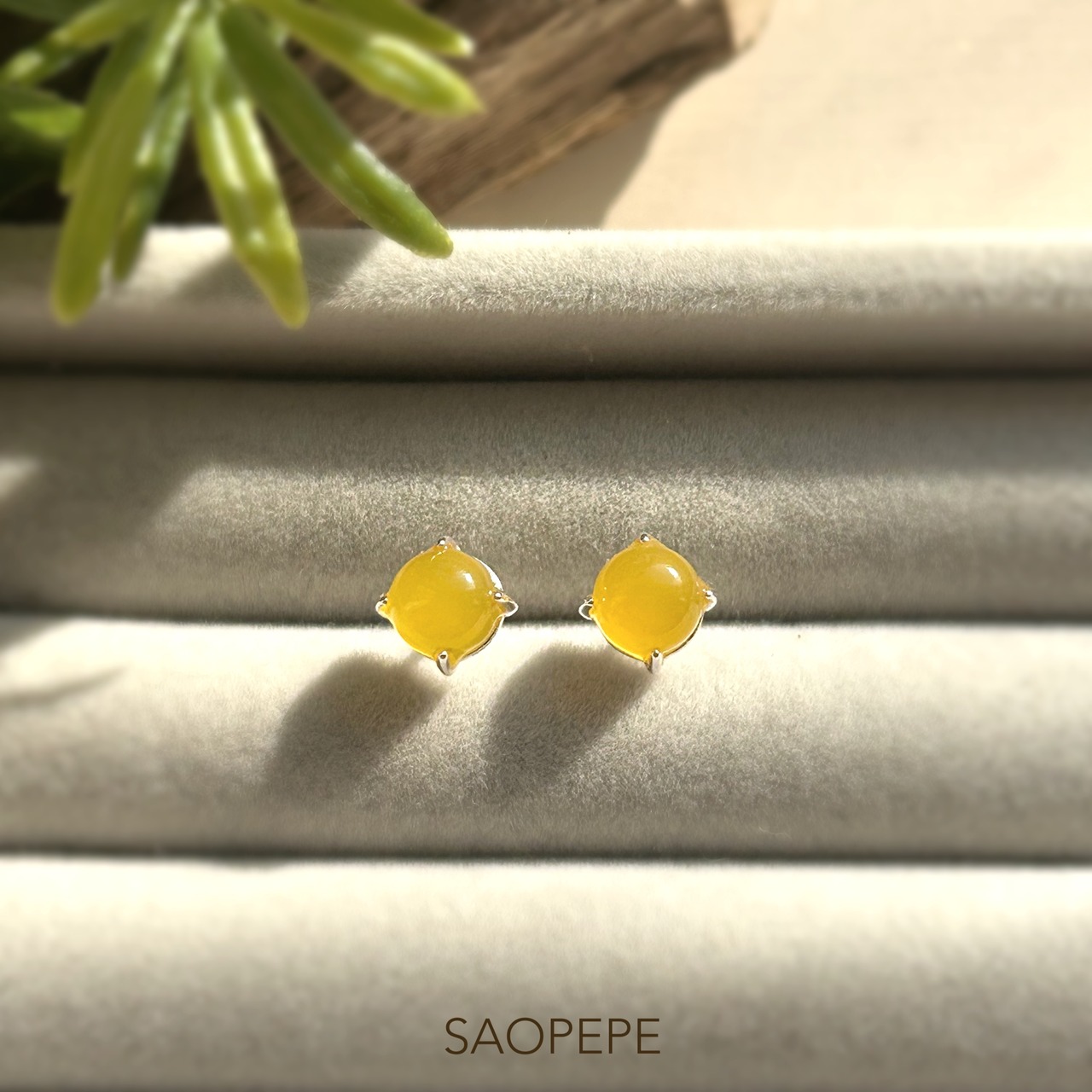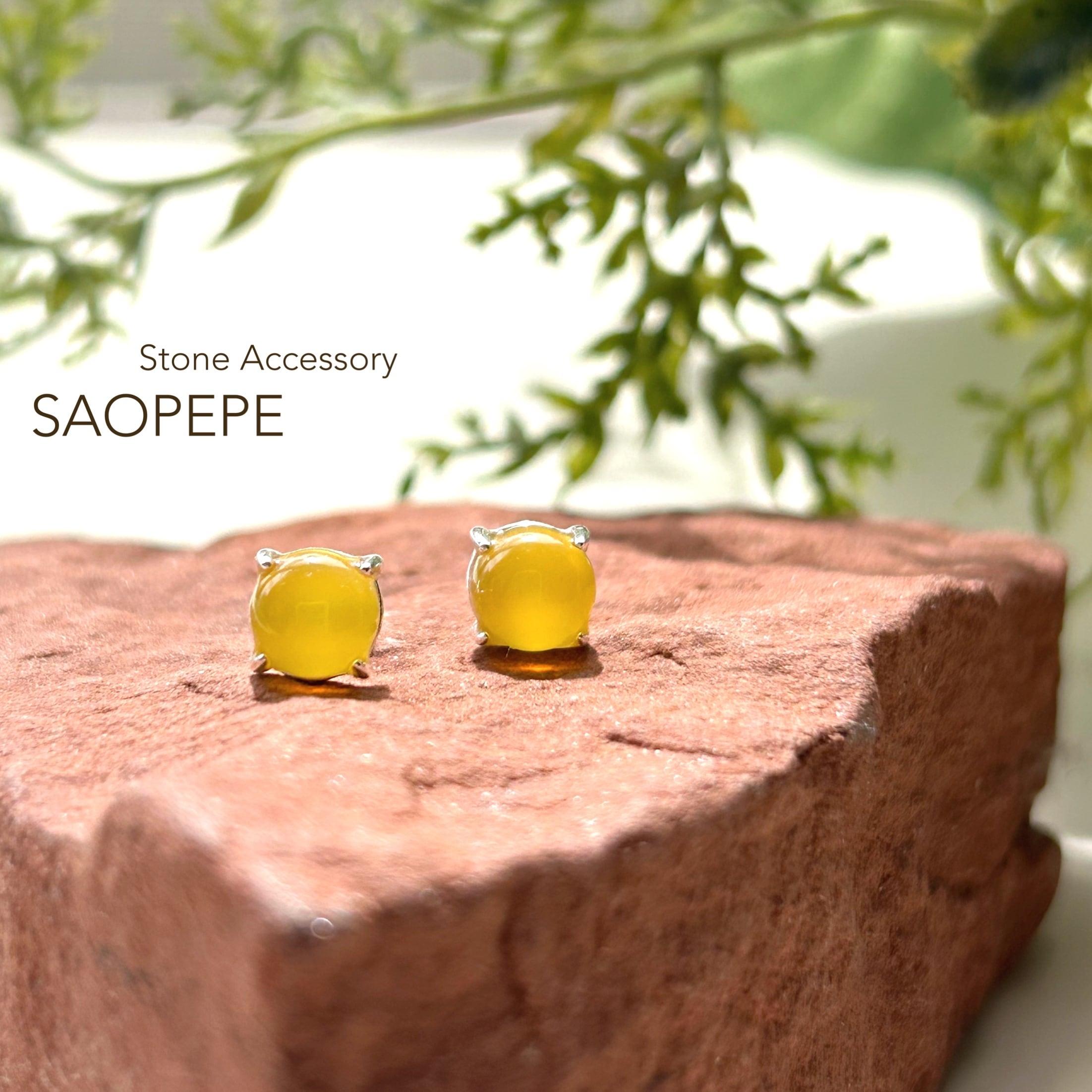 意外と少ない黄色の天然石イエローカルセドニーのSTUDピアス、Silver version。
