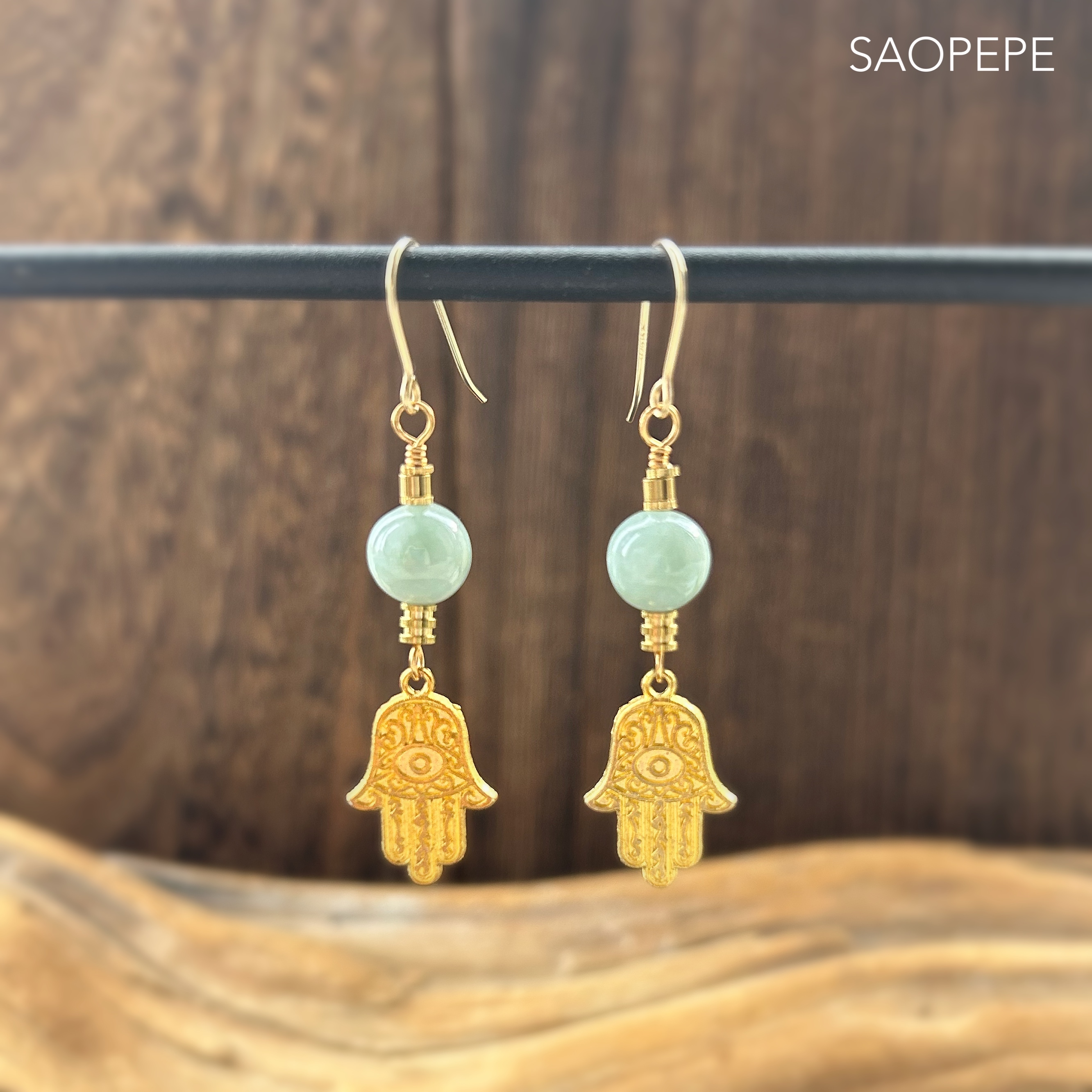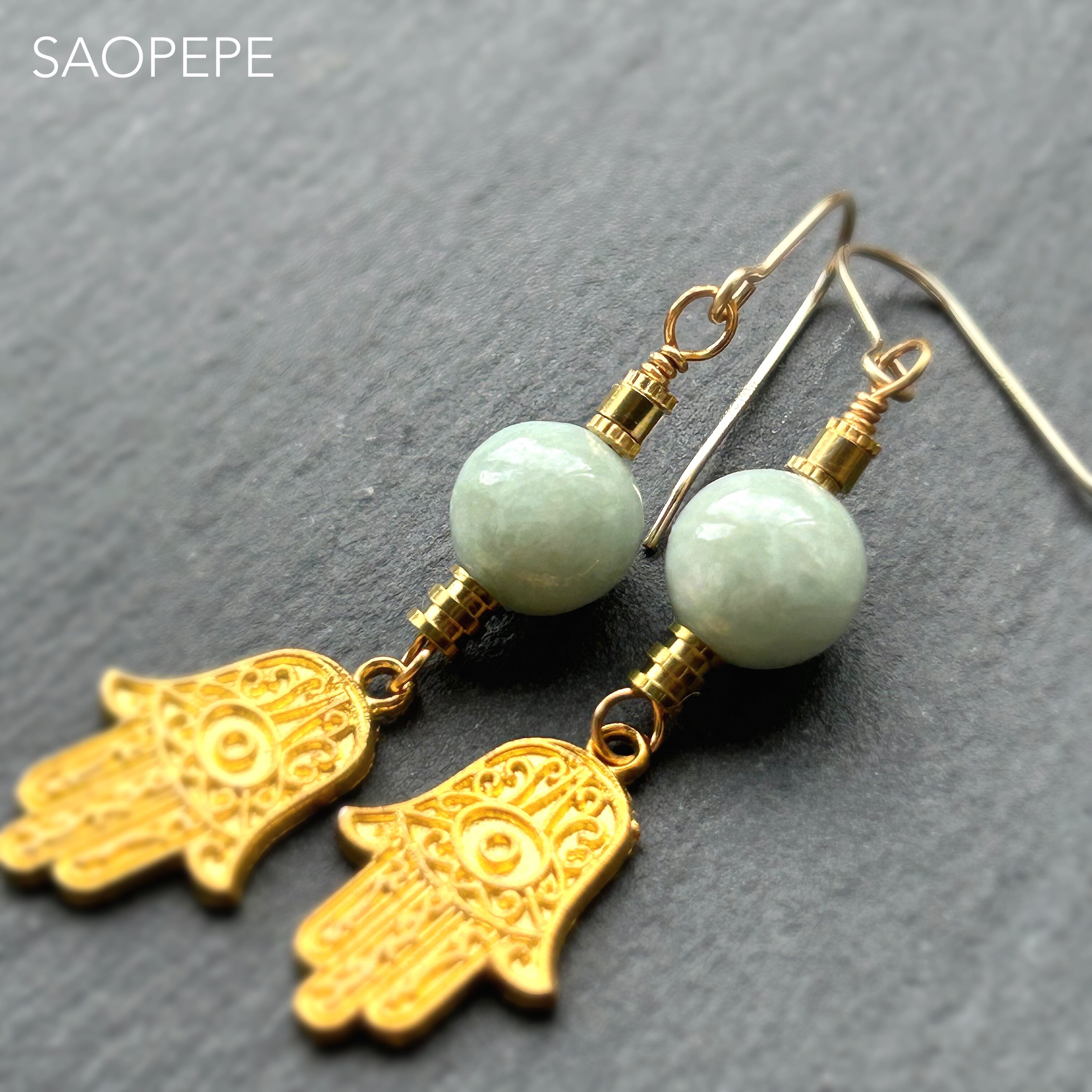 本翡翠 ピアス(Fatima's Hand/Gold color)