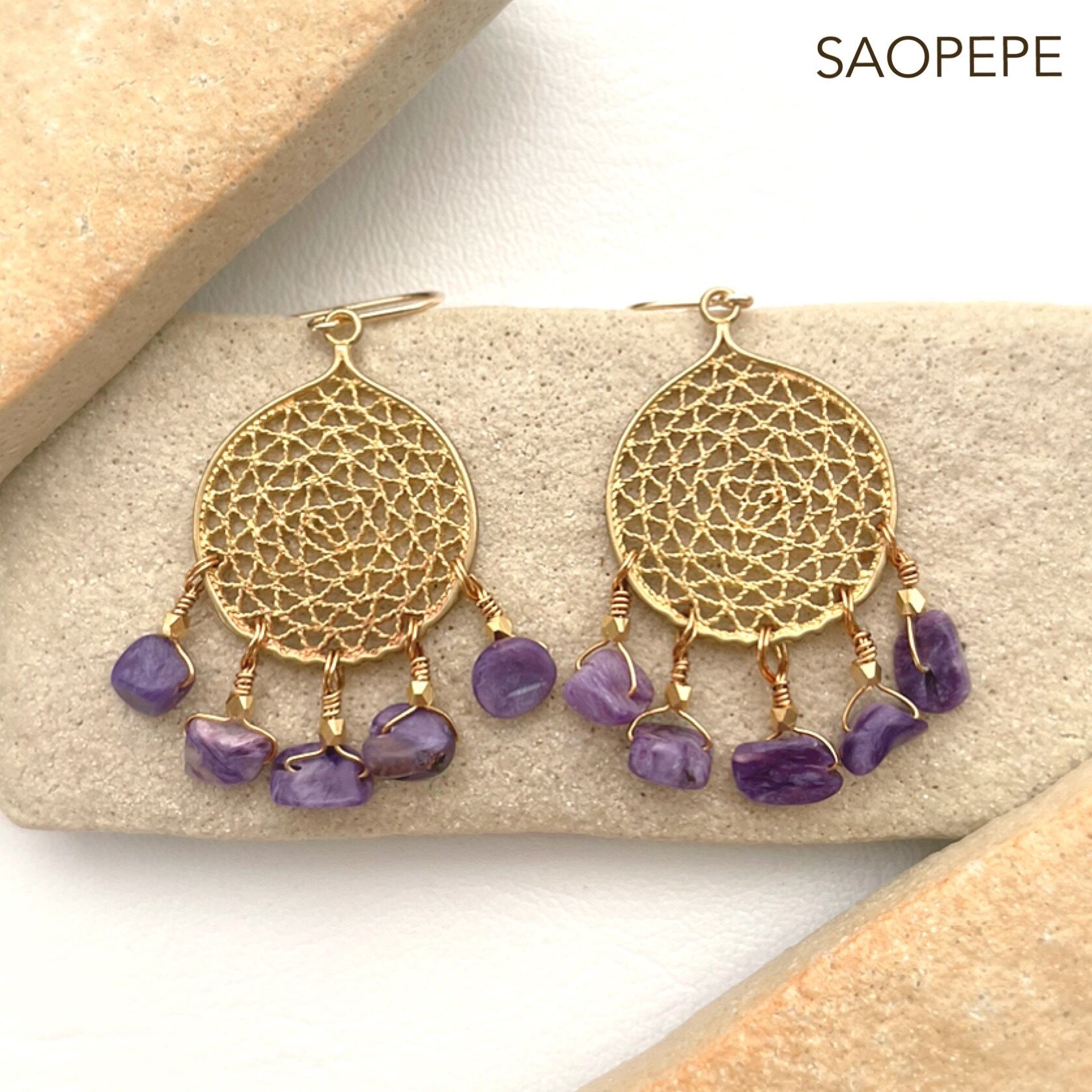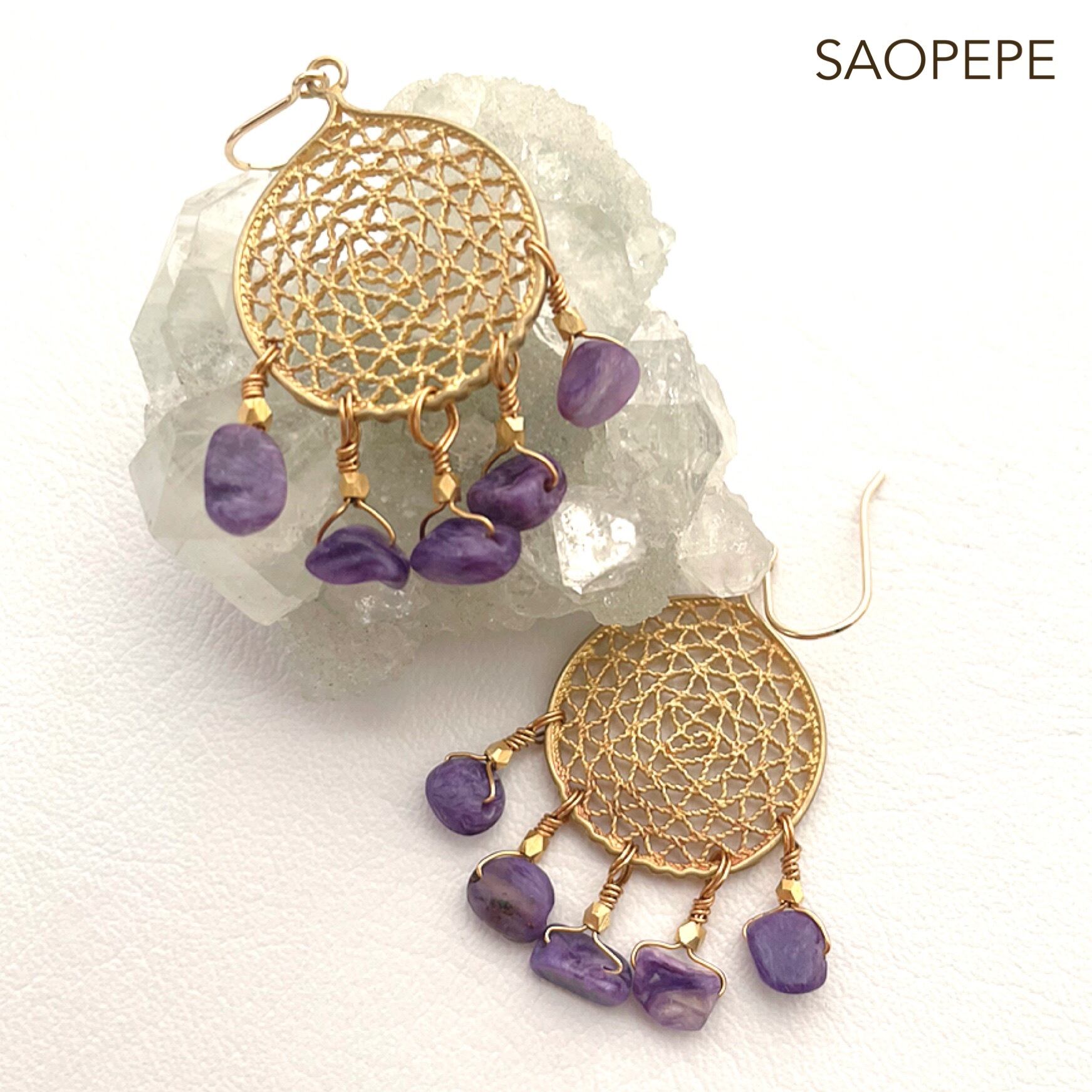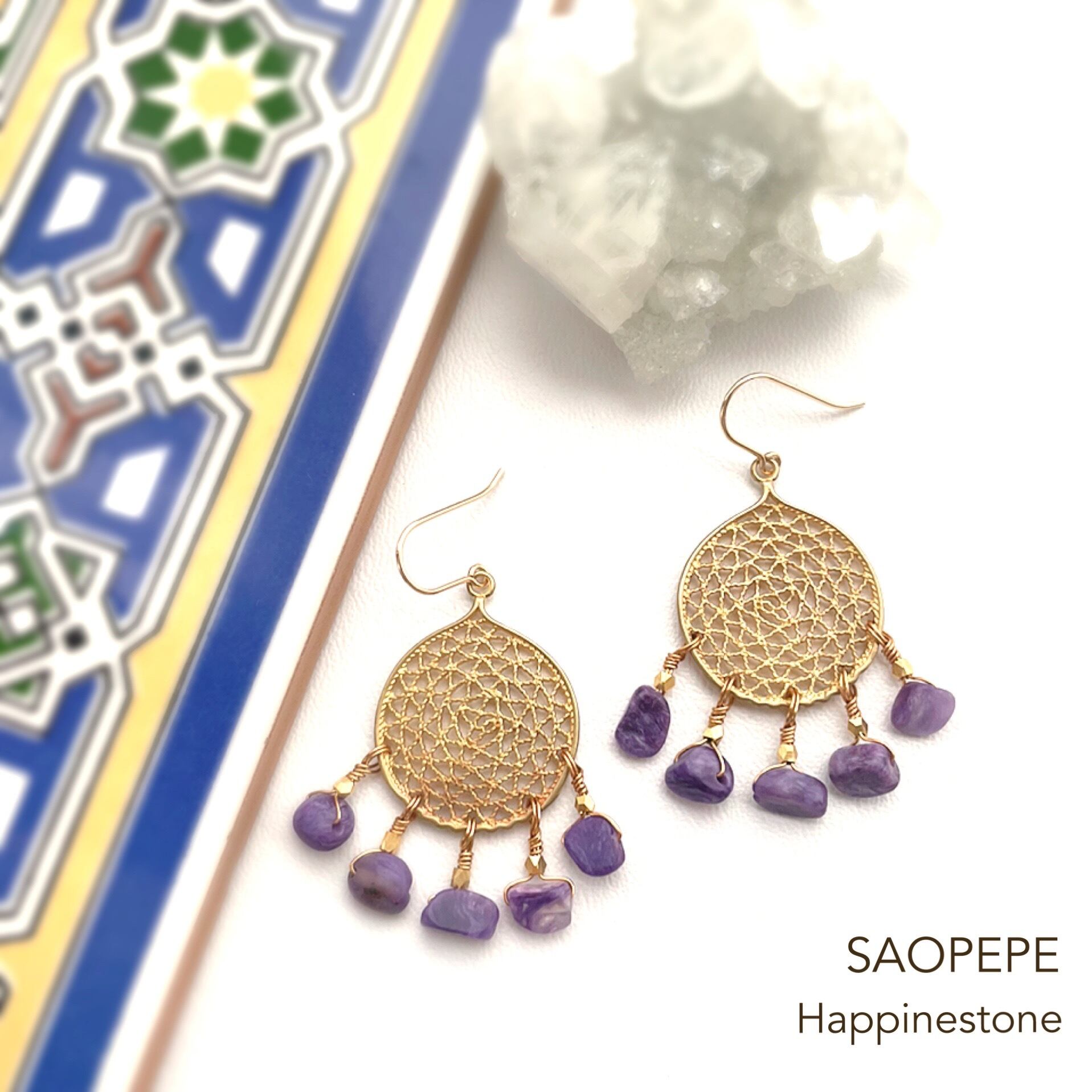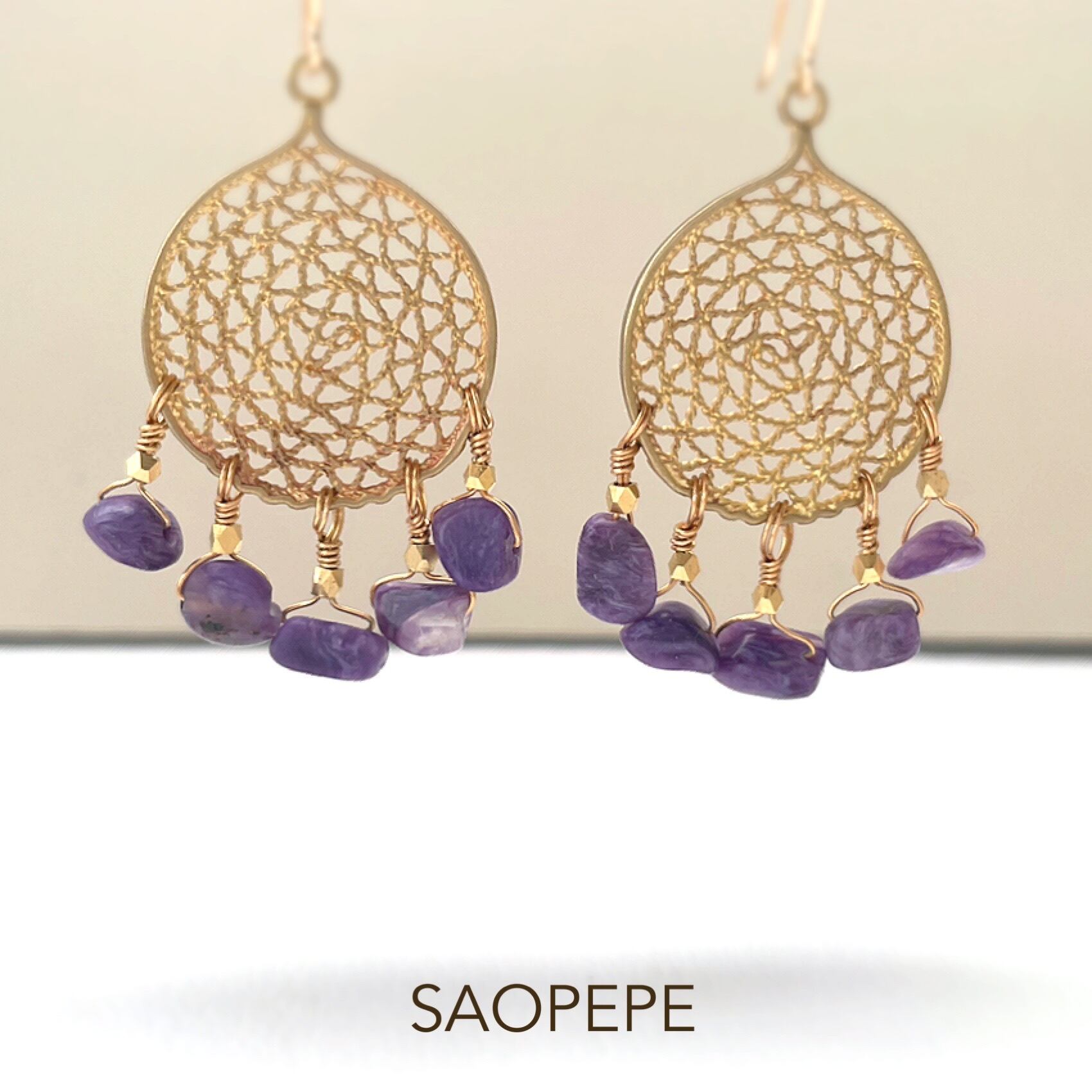 魅惑的なチャロアイトの上には、繊細な透かしラウンドチャーム!