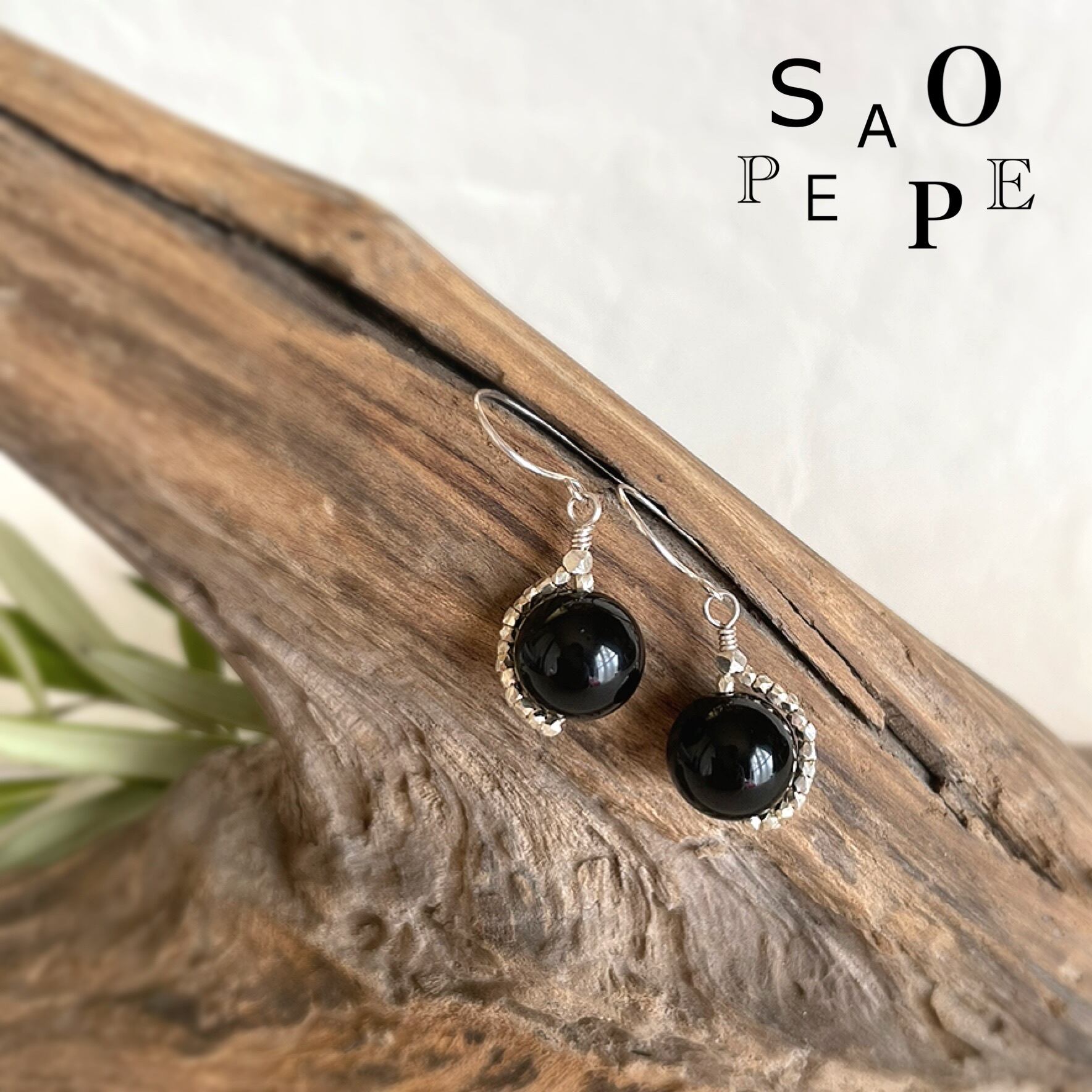 その直輸入モリオン原石を国内で職人さんの手によって丁寧に加工された丸玉ビーズ、そのビーズをこちらのピアスに使用しています。
