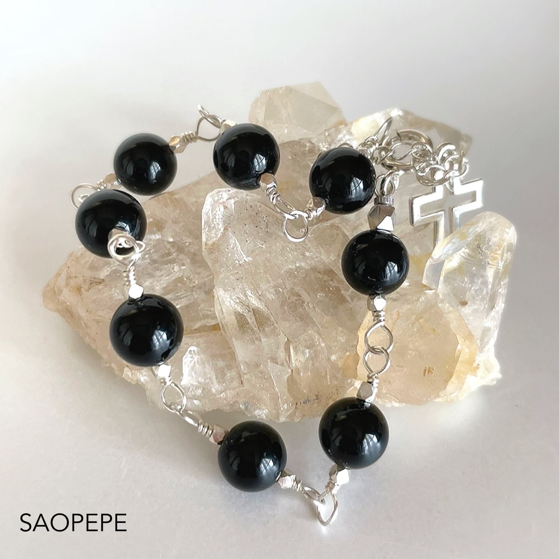 MORION(黒水晶) ブレスレット(クロス)SV925