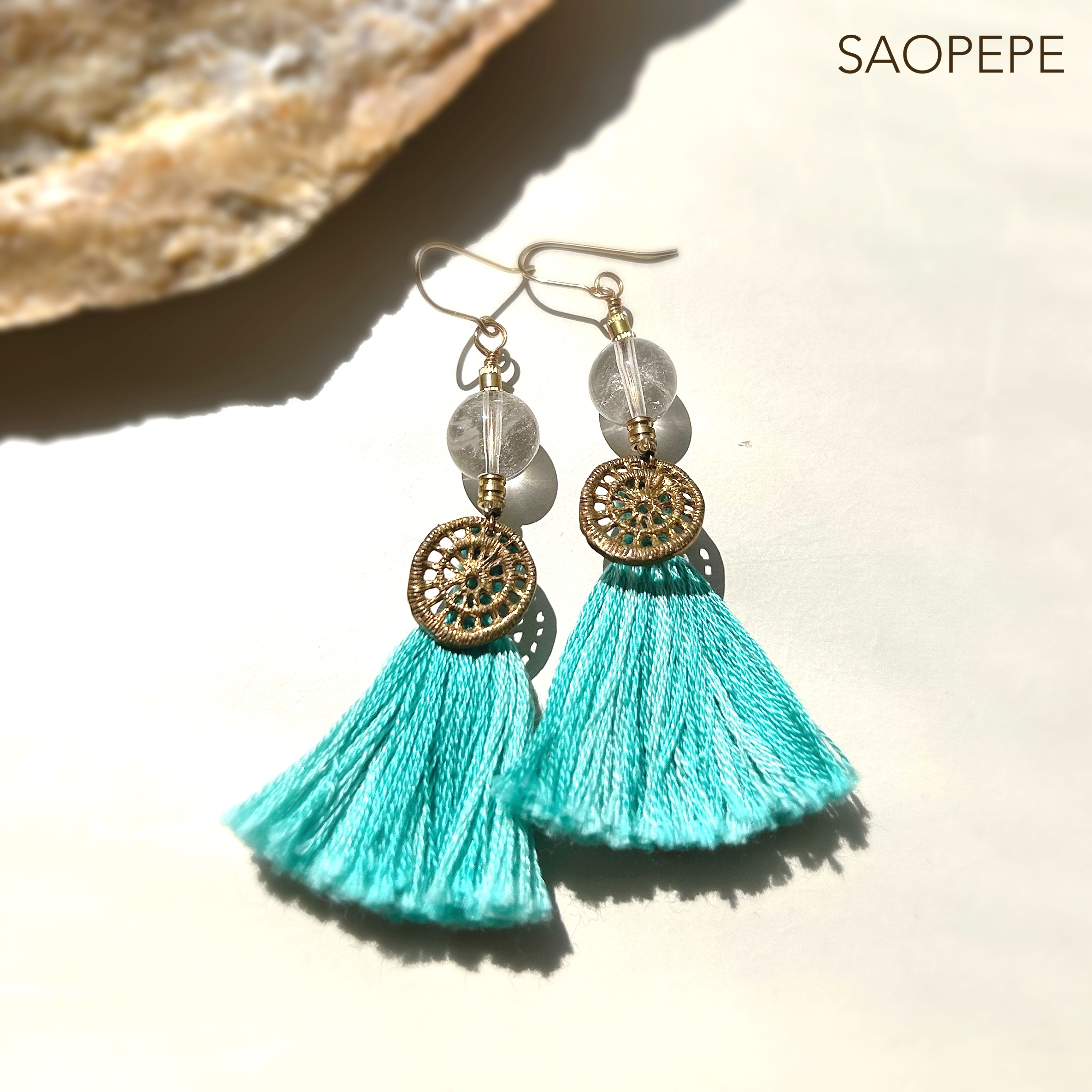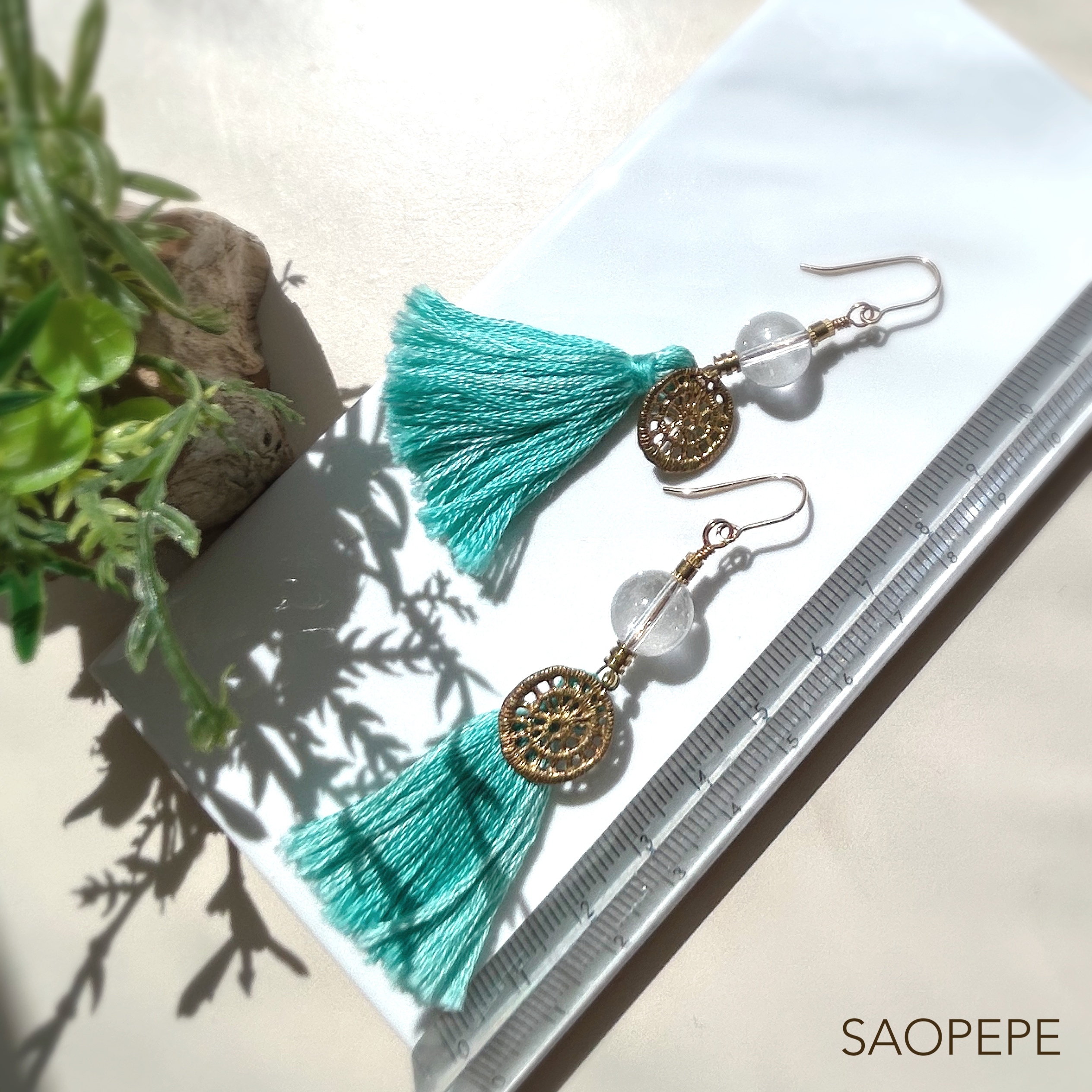 鮮やかなエメラルドグリーングラデーションのタッセルピアス!