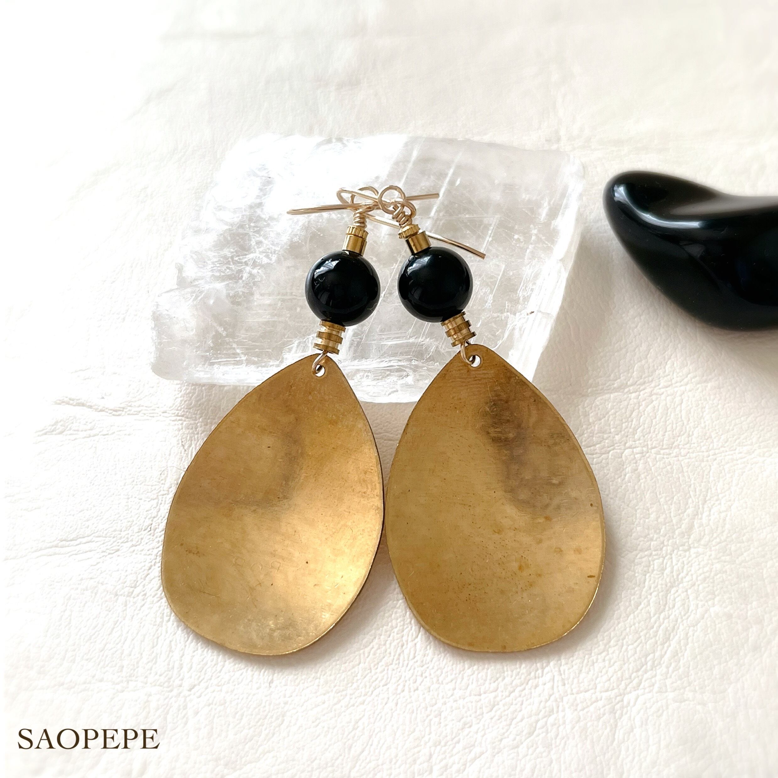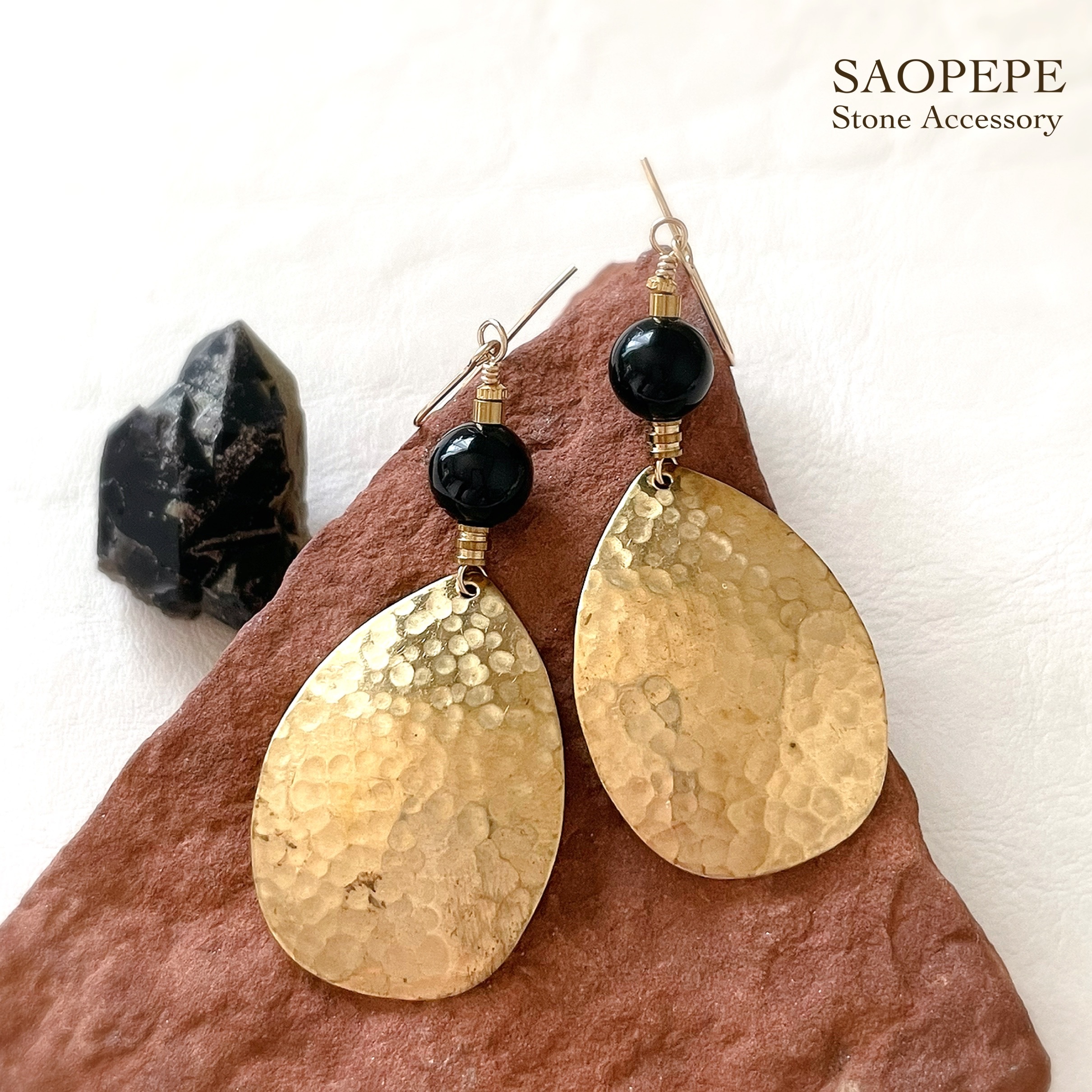 MORION(黒水晶)のDecoピアス【Big Curve Drop】