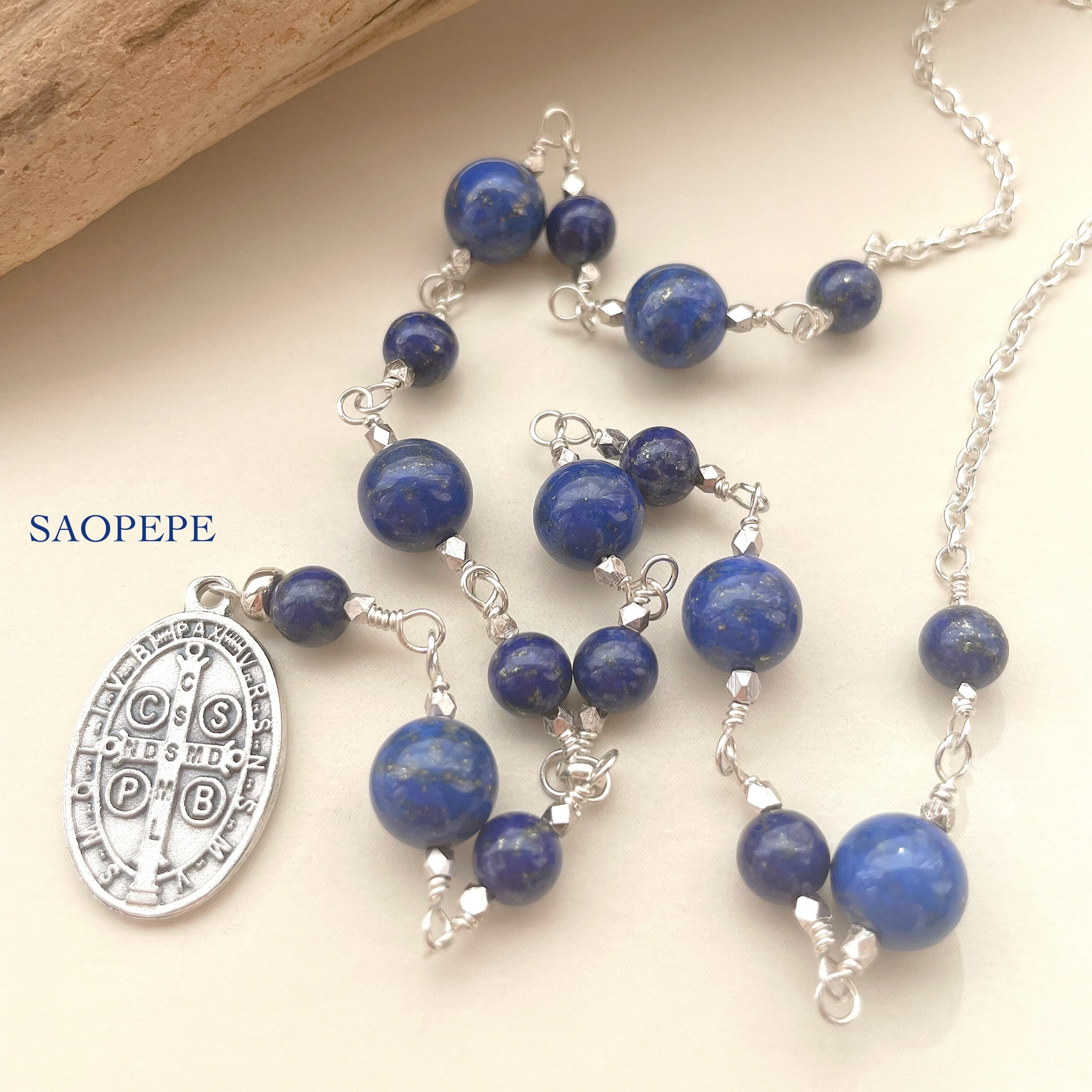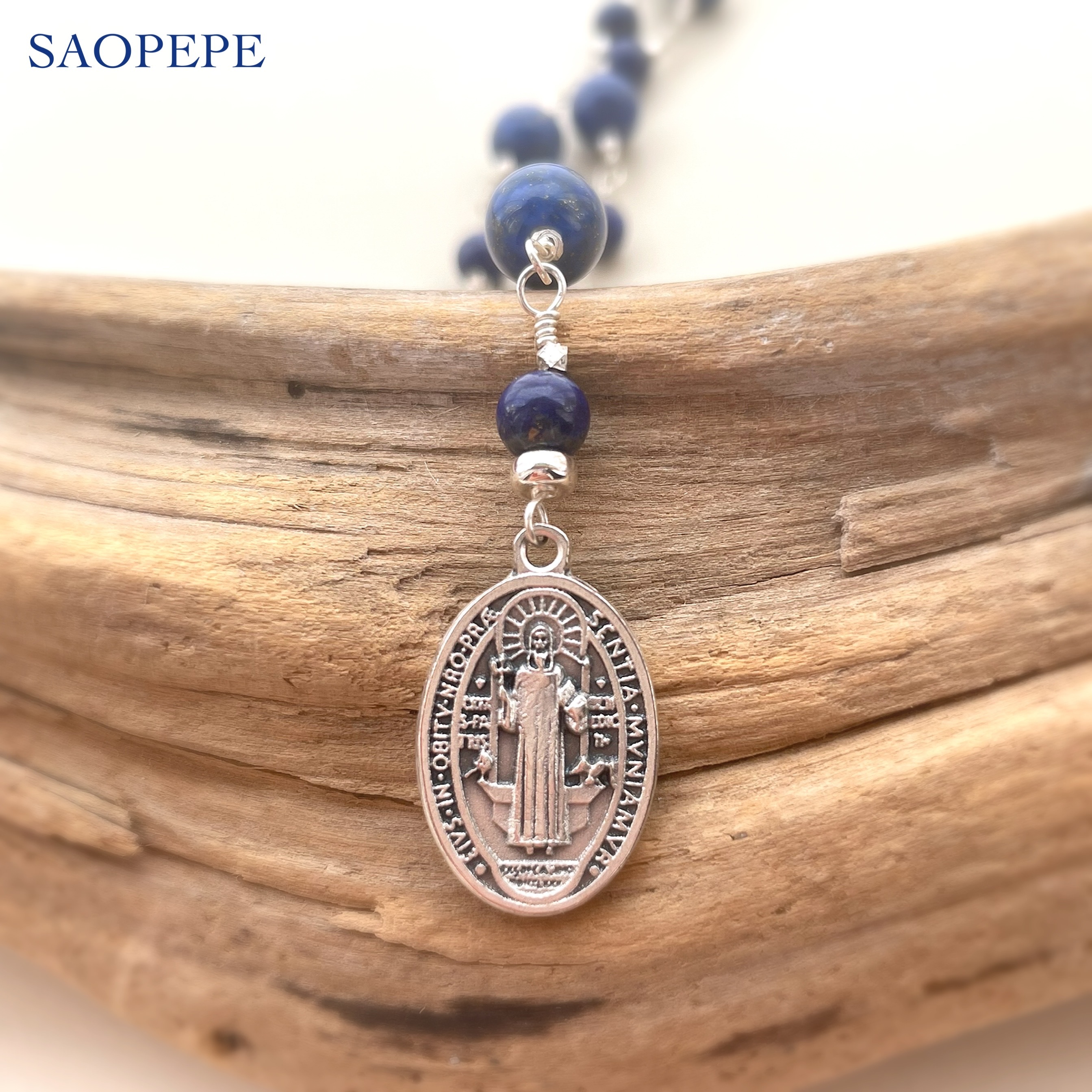 Lapis LazuliのSV925ロザリオネックレス【Italiaメダイ】
