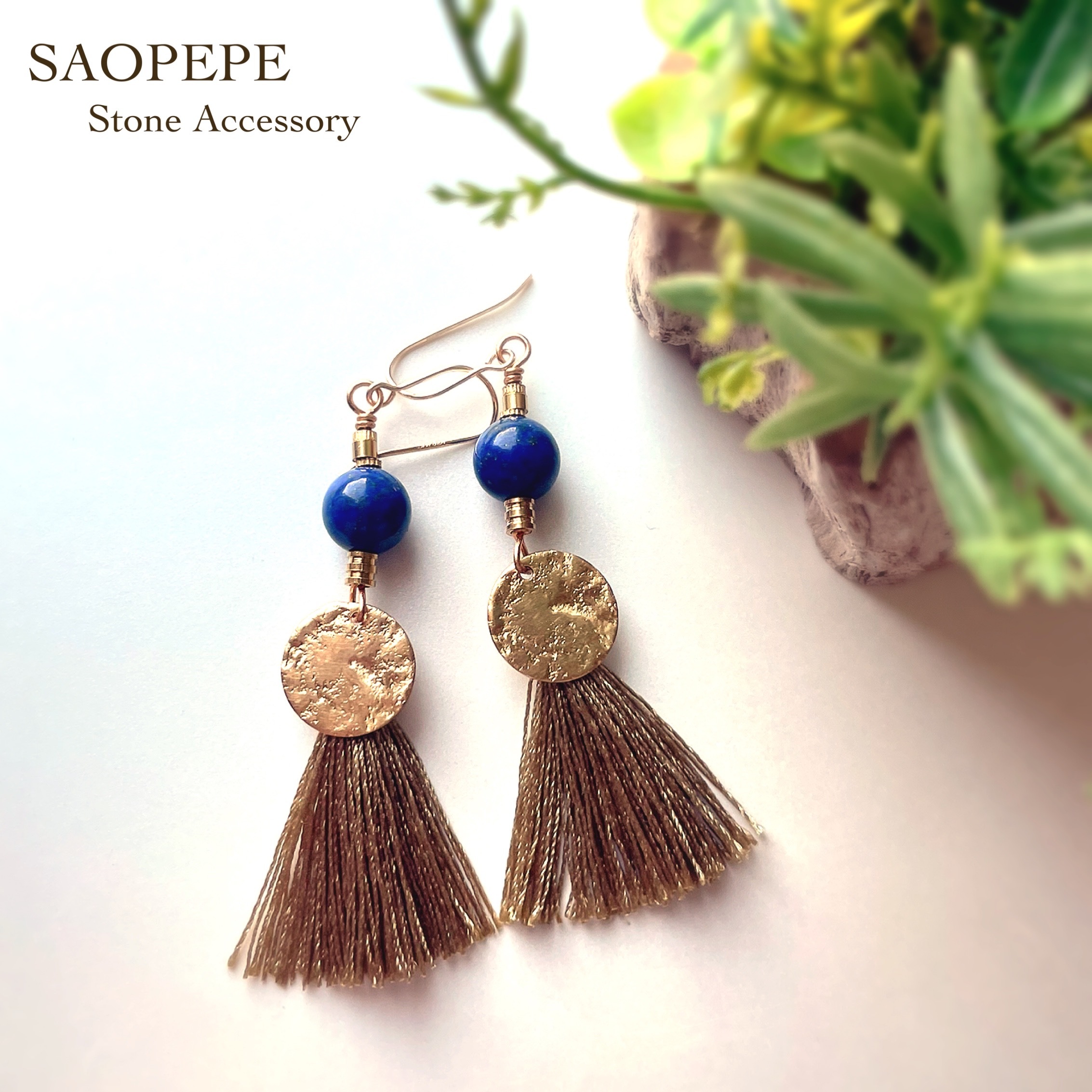 LAPIS LAZULI Khakiタッセルピアス(Circle)