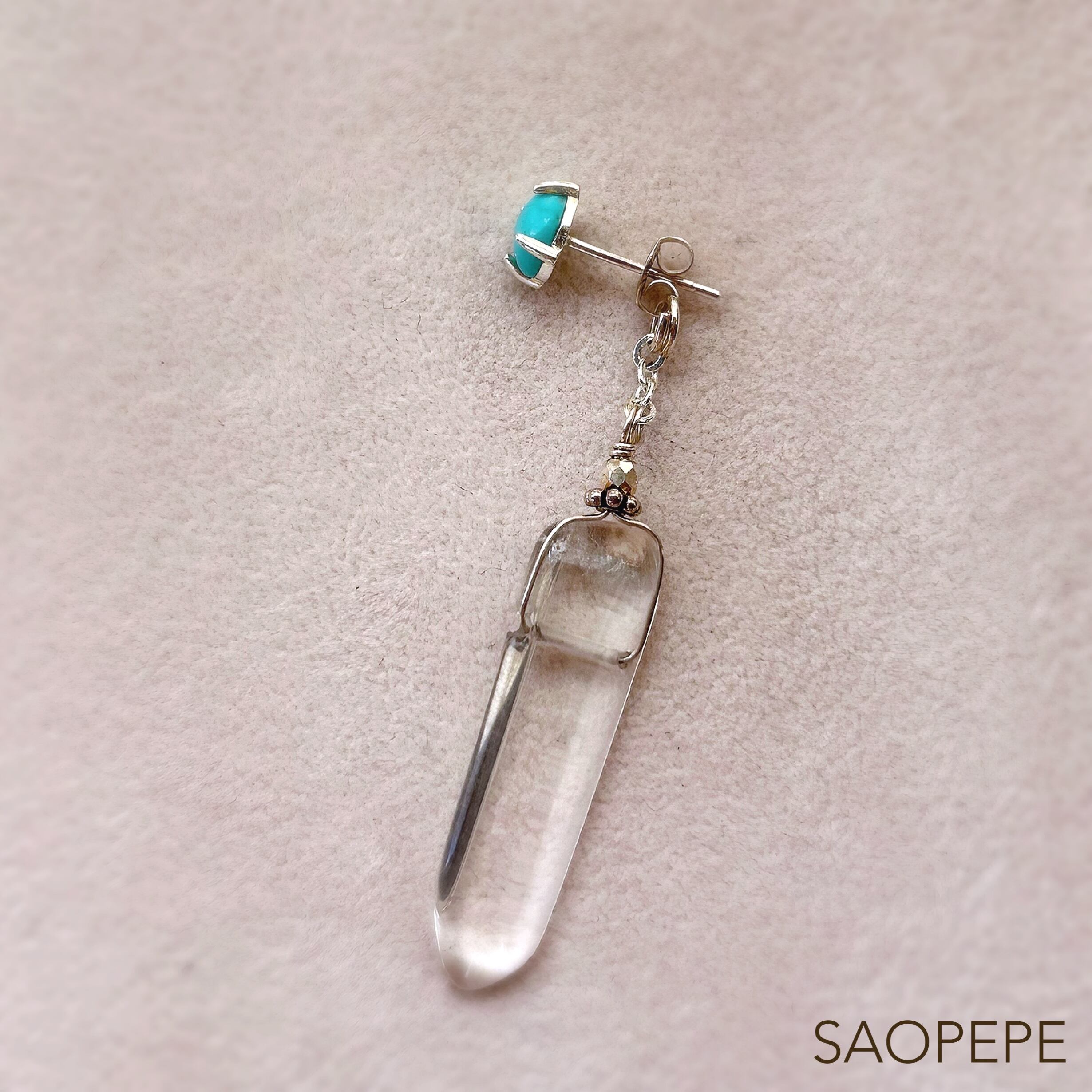 耳たぶの後ろから水晶がゆらゆらとSwingする形となり、個性的な装いに早変わりするアイテムとなっております!