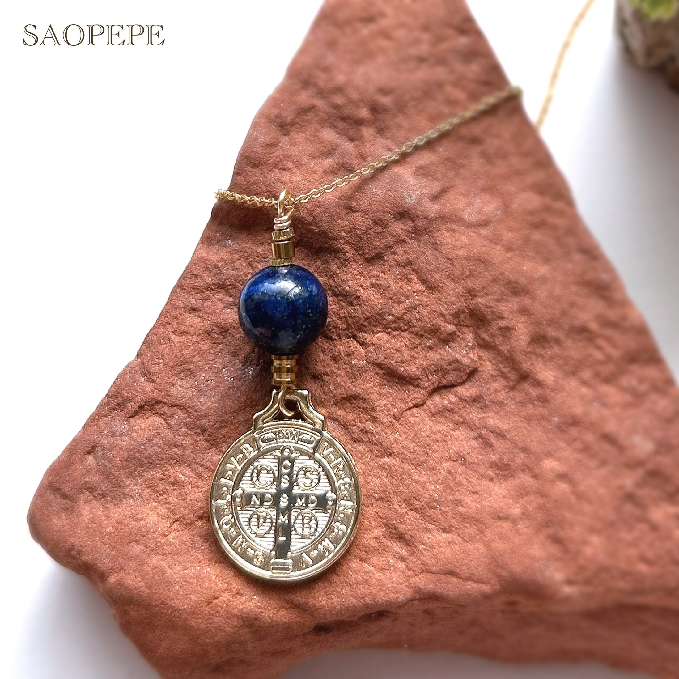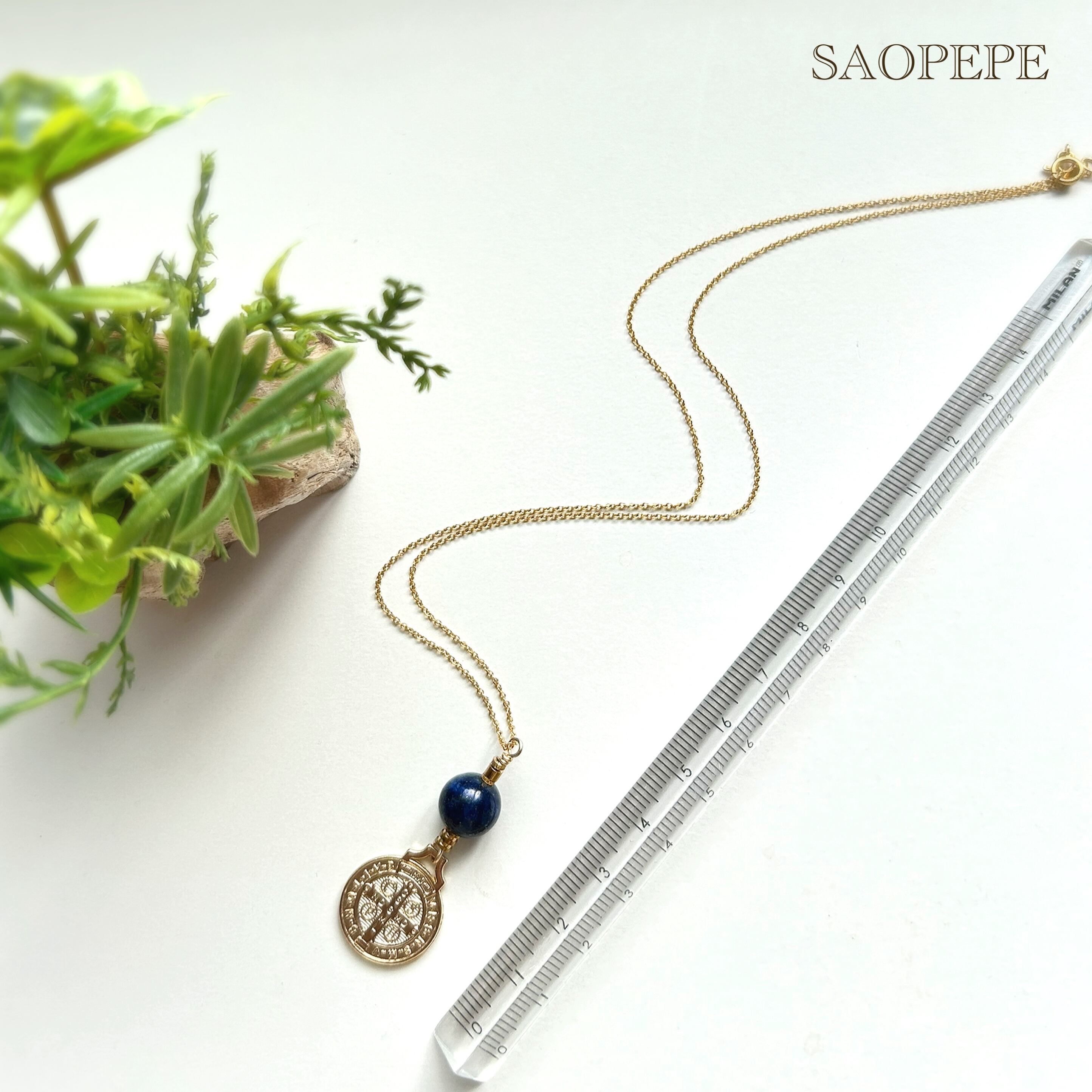 ラピスラズリの下にはGold Colorの正円形メダイ。